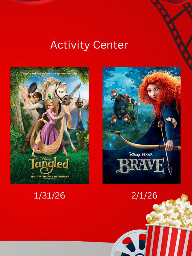 🍿 Popcorn, sweet treats (including chocolate and cotton candy), and drinks will be available for purchase $. Outside food and drinks are not allowed.